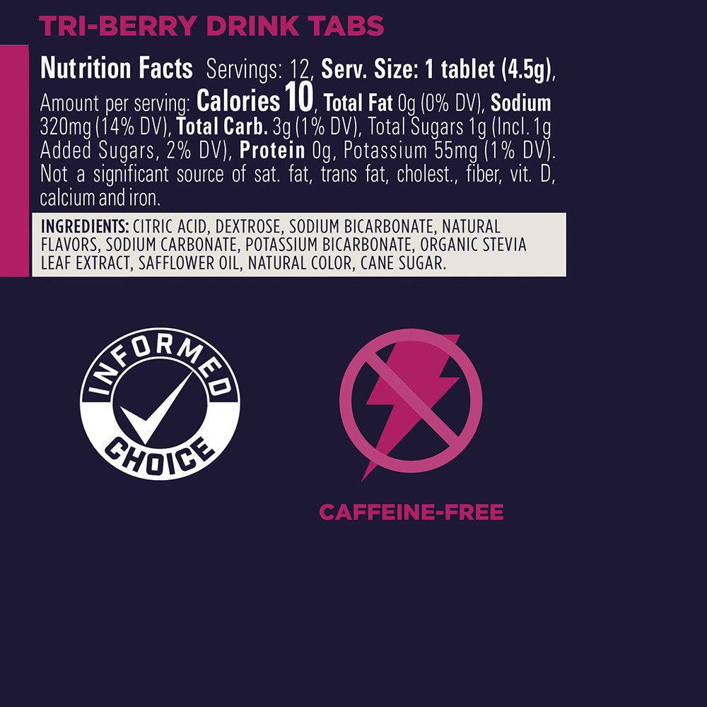 Not just for triathletes, Tri-Berry is a tasty way to pack your electrolytes into your hydration. A delicious blend of berry flavors in one dissolvable tablet, this flavor delivers a refreshing combination of fruity and tart notes. Give it a “tri”!